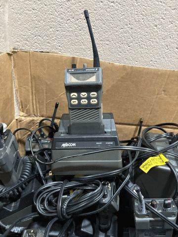 12 Ericsson M-RK Dispatching handheld radios with a chargeable base and 1 without a base. Some lack an attached antenna, or some are just broken, Models PK3ZEE, PK38EX, PK2ZGE, PK3ZGE; SN 9328680, 9332035, 289619, 268399, 278931, 0541125, 271975, 9332738, 309645, 9331924, 9331847, 272020, 281983; Location 1