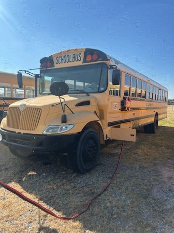 2013 International 77 School Bus; VIN 4DRBUAAN0DB324021; 55,388 Miles; MaxxForce Diesel; Auto; A/C; PS; Air brakes; Was running when taken out of service - current condition unknown; Unit 7; Location 1