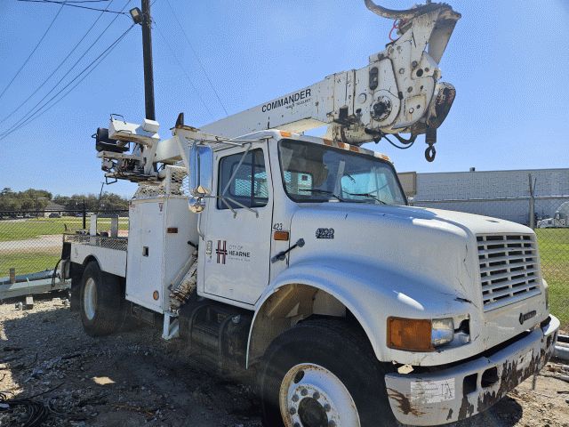 1999 International 4700 Bucket Truck; VIN 1HTSCABN9XH619080; 10,313 Miles showing - NOT ACTUAL; Diesel; Manual; 60-40 seats; PS; Air brakes; Has key; Running when last utilized Jan 2026; Hydraulic leak on digger portion
