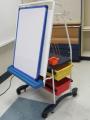 Used kidney table, approximately (15) student chairs, easel