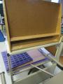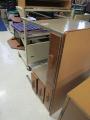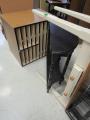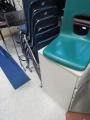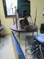 Used bookshelf, teacher desk, metal cart, table, round table, approximately (8) student chairs