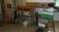 Welders table, 1 Wilton clamp, 1 westward air compressor, 1 press, 1 Dayton drill press, 1 welder helmet, 2 flammable cabinets, and assorted air filters; Location 24