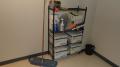 Assorted workshop tools, paint, cleaning supplies, shelf unit, 1 cabinet, 1 refrigerator and 1 microwave; Location 24