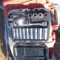 BLACK POP A LOCK SET; RIGID BLACK CARRYING CASE; GREEN MAKITA SAWSALL; BLUE OTEX BAG W/PRESSURE TOOL; BLACK STANLEY SOCKET SET; (2) CRAFTSMAN SOCKET SET; BLACK SNAO ON CASE W/SOCKETS; (2) SOCKET SETS (2) LARGE SET WRENCHS; PRECISION PRESSURE TOOL IN ORANGE PELICAN CASE; KLEIN TOOL CONNECTORS; Location 2