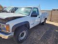 1997 Chevrolet 2500 Utility Body 4x4 Pickup; VIN 1GBGK24R5VZ255635; 122,495 Miles; Gas; Manual; Fabric Bench seats; Rubber mats; A/C; PS; PB; Radio; Was running when taken out of service - current condition unknown; NO BATTERY - BATTERY HAS BEEN REMOVED; LAST UTILIZED 7/24; WILL NEED A NEW BATTERY; HAIL DENTS, SCRATCHES ALONG BODY; RUST SHOWING IN SOME AREAS; BROKEN DRIVER'S SIDE INTERIOR DOOR HANDLE; CRACKED WINDSHIELD; DRIVER'S SIDE SEAT TORN ON SEAM AND BACK BOTTOM OF THE BACK; VINYL TEARING IN FLOORBOARD REA ALONG THE DOOR SEAM; HAS BEEN SITTING SINCE '24; DECALS & PLATES WILL BE REMOVED
