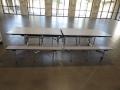 Lot of 6 folding/rolling cafeteria tables with attached seats; Location 117