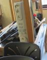 Used various size tables, wooden cabinet, approximately (8) student chairs, wood table