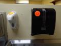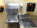 Eagle stainless steel sink with napkin holder, Tork towel holder and soap dispenser; Location 117