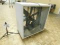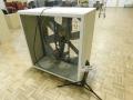 Home made white wood box fan 110v approximately 41"wide x 24"deep x 43"high. Unit has wear and tear and weathering. Operational when removed from service.