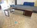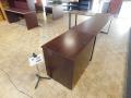 Lot of 1 L shaped desk with wear and tear and missing screws. Desk and extension is approximately 120"wide 24" deep x 29.5" high, extension is approximately 66" deep from wall.