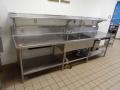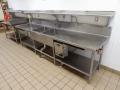10 foot stainless steel double sink with drain boards, in-sinkerator, and upper shelf; Location 117
