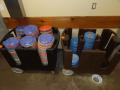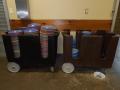 Lot of multicolored melamine plates and 2 rolling carts; Location 117
