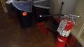 Lot of 7 bunk beds, 2 trash cans, 1 fire extinguisher, 1 broom and 2 dustpans; Location 12