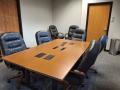 Large Conference Table with 5 tables: (2) 24" x 84", (1) 24" x 96", (2) 30" x 96"; grommet cuts, cherry; No other items shown in pictures are included in the lot