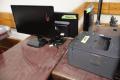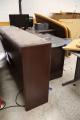 Conference table, Desks, Monitors, Printer, Overhead desk storage, Library signs; Location 1