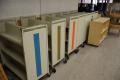 7 rolling book carts, 2 rolling cubbies, 4 tables; Location 1