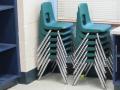 Used (2) 4ft round table, bookshelf, 30in x 60in table, approximately (20) student chairs, (2) open front desks