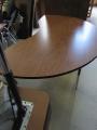 Used bookshelf, (2) carpets, (3) kidney tables, (2) 36in x 60in tables, (4) wooden chairs
