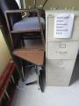 Used approximately (2) folding school cafeteria tables, approximately (30) open front desks, approximately (8) student chairs, metal cart, metal 4-drawer file cabinet, table, office chair, easel, 30in x 60in table
